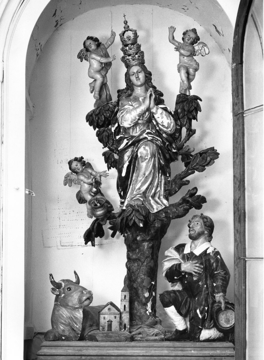 Personaggi: Madonna; contadino. Figure: angeli. Animali: bue. Oggetti: modello Santa Casa di Loreto