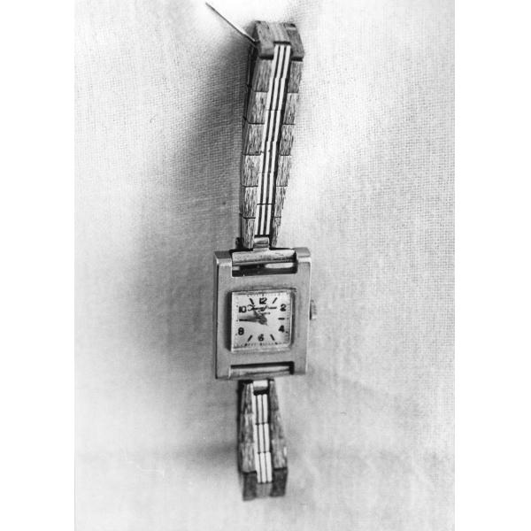 Orologio rettangolare con bracciale ad elementi rettangolari. Ex voto di S. Maria Chiara.