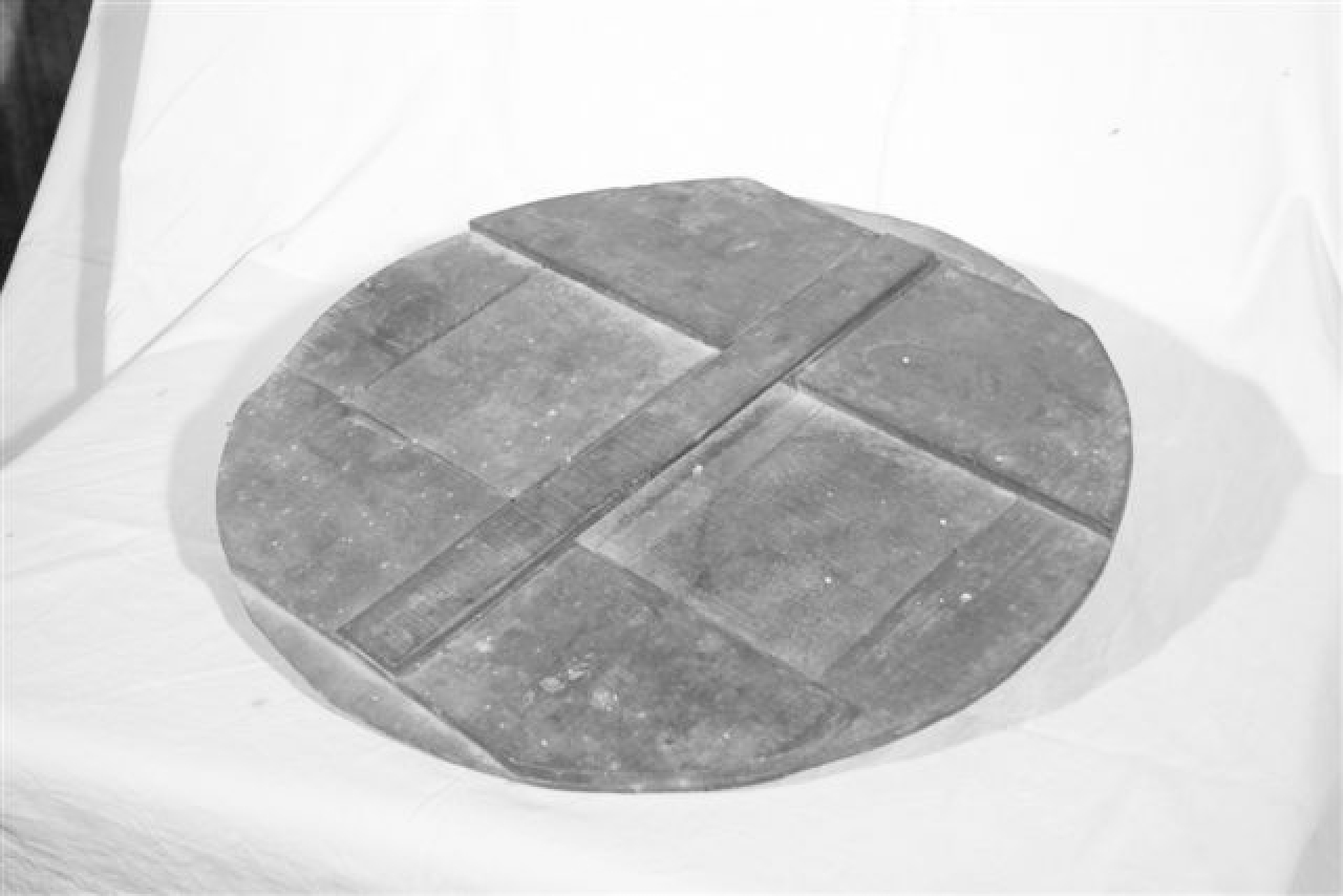 Coperchio in legno di forma circolare, il cui manico è ricavato da una asticella di legno estremamente bassa, proprio per meglio consentire l'applicazione di pesi sopra di esso