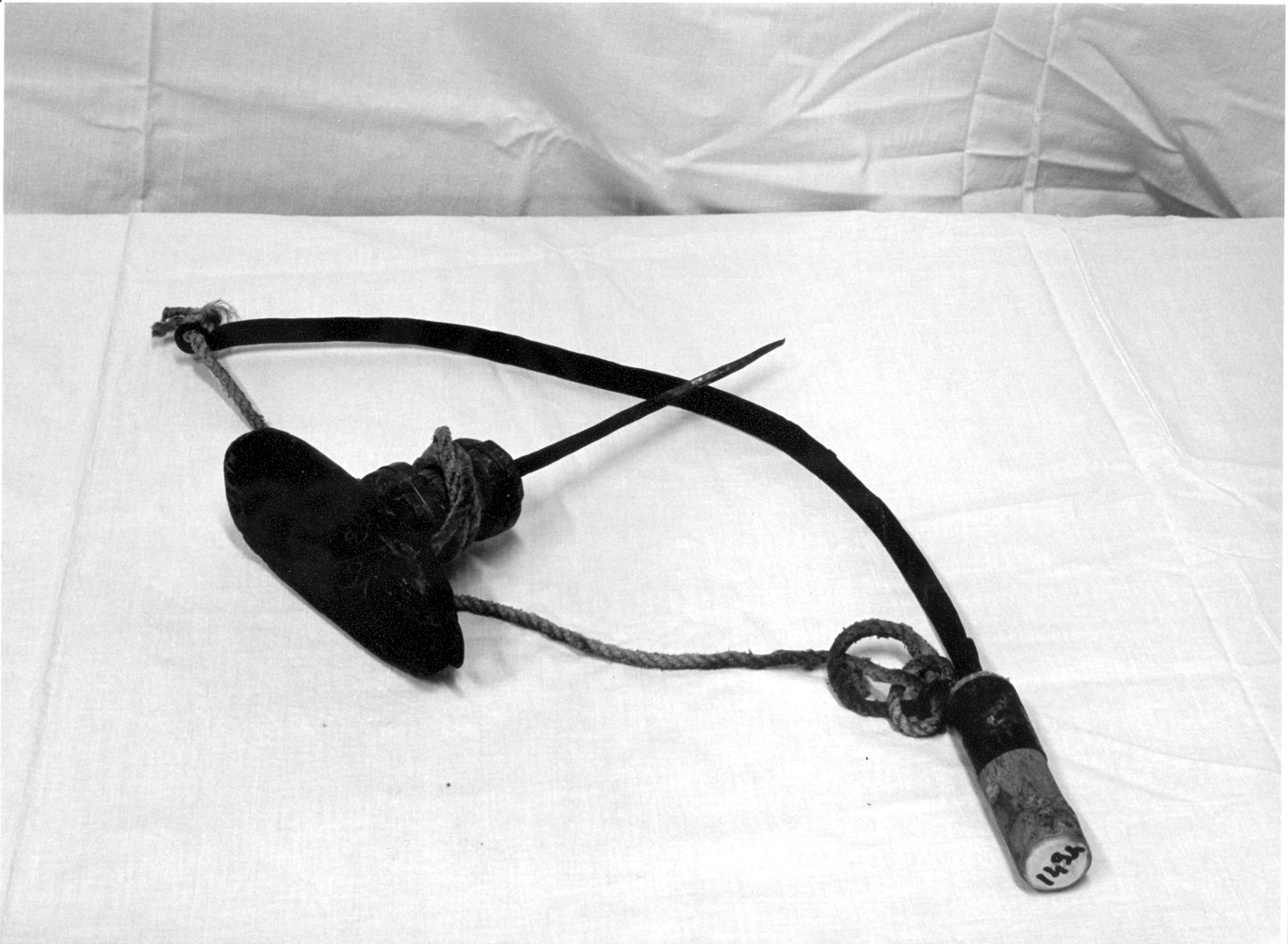 Strumento costituito da una punta di ferro per forare, un arco, anch'esso di ferro, da una saetta e una corda