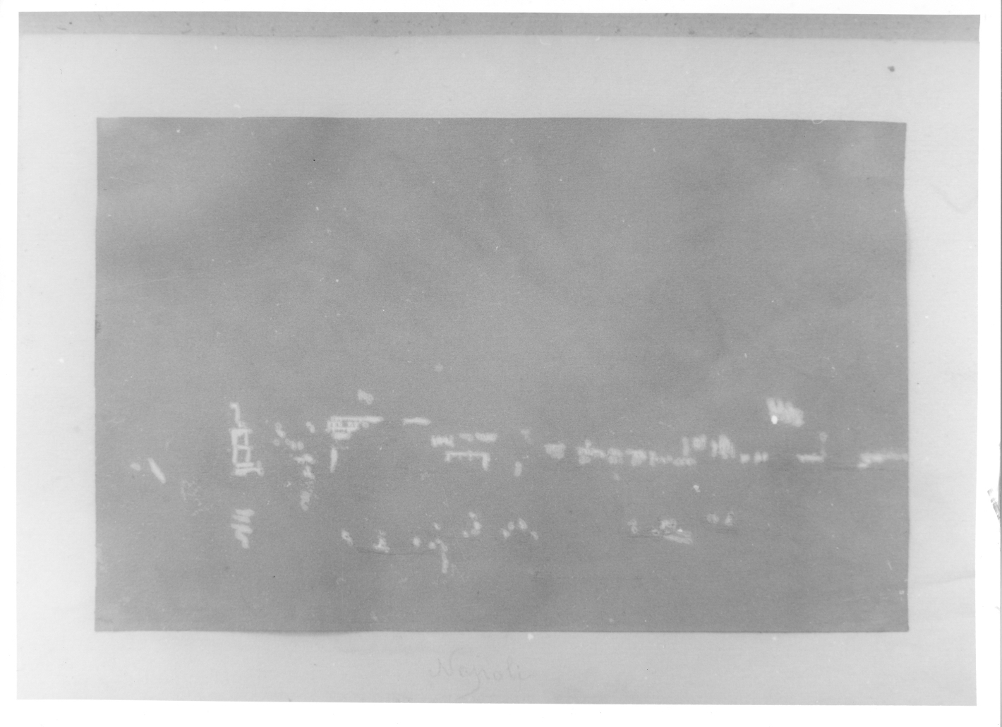 Veduta di Napoli eseguita a matita, biacca e acquerello.. Vedute: Napoli
