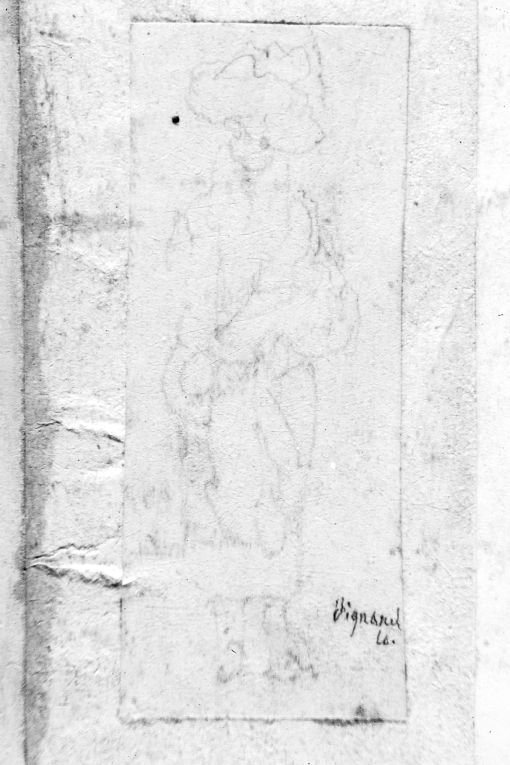 Figura femminile con fagotto di panni sulla testa (disegno)