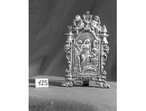 argento/ sbalzo/ cesellatura/ doratura; legno
