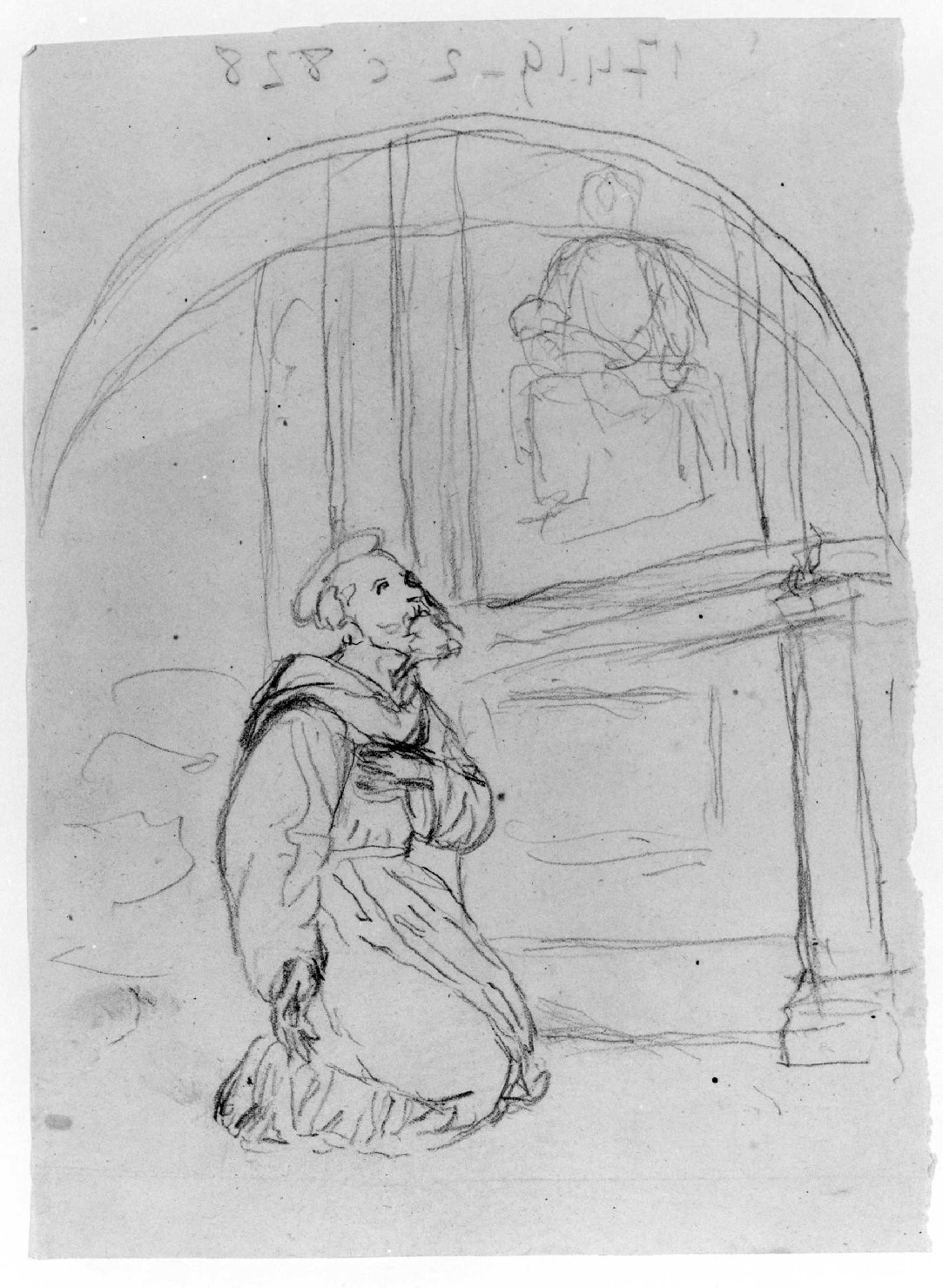 Disegno con Santo in ginocchio in adorazione di un'immagine della Pietà