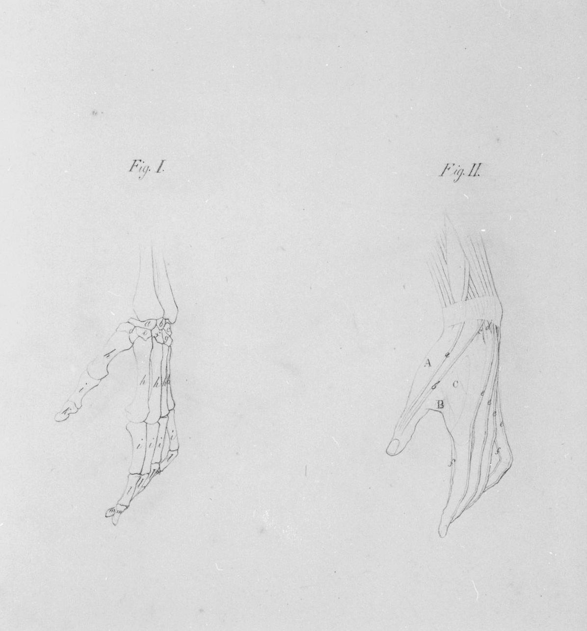 ossatura e muscolatura della mano viste di fronte (disegno, elemento d'insieme)