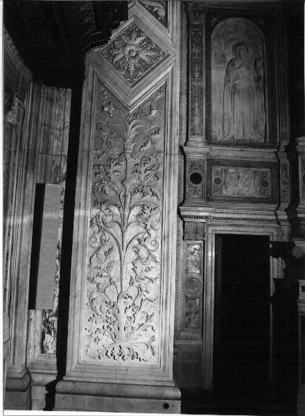 MARMO BIANCO SCOLPITO/ DORATO; STUCCO MODELLATO/ DIPINTO/ DORATO