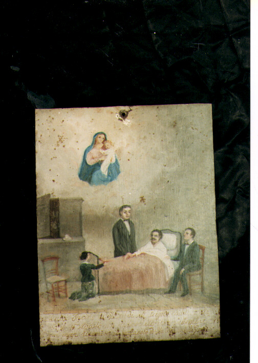 Scena di guarigione al capezzale di un malato con l'apparizione della Madonna delle Grazie (ex voto dipinto)