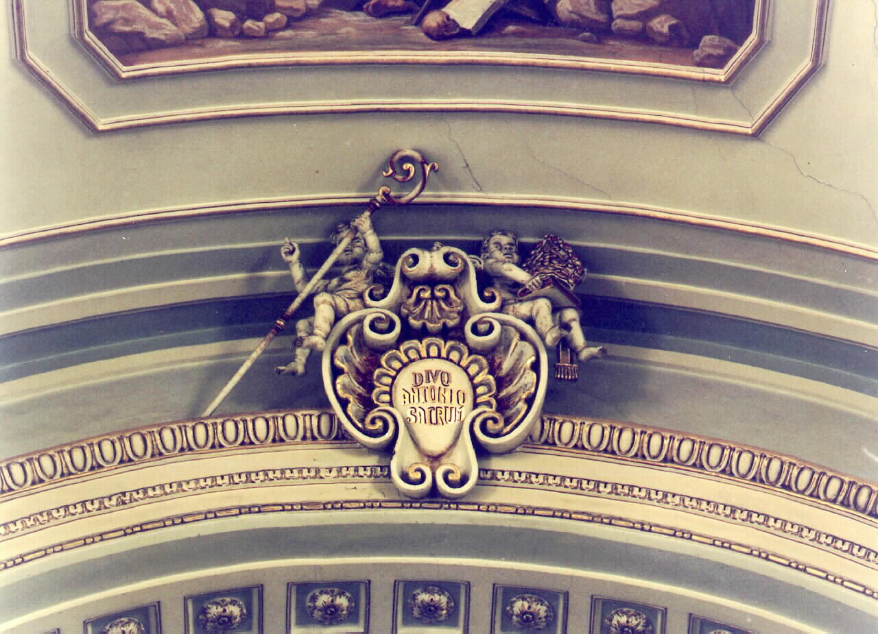 angioletti con cartella reggenti attributi di Sant'Antonio abate