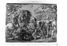 Caccia al cervo e al cinghiale; in primo piano a destra Diana, caccia (stampa tagliata)