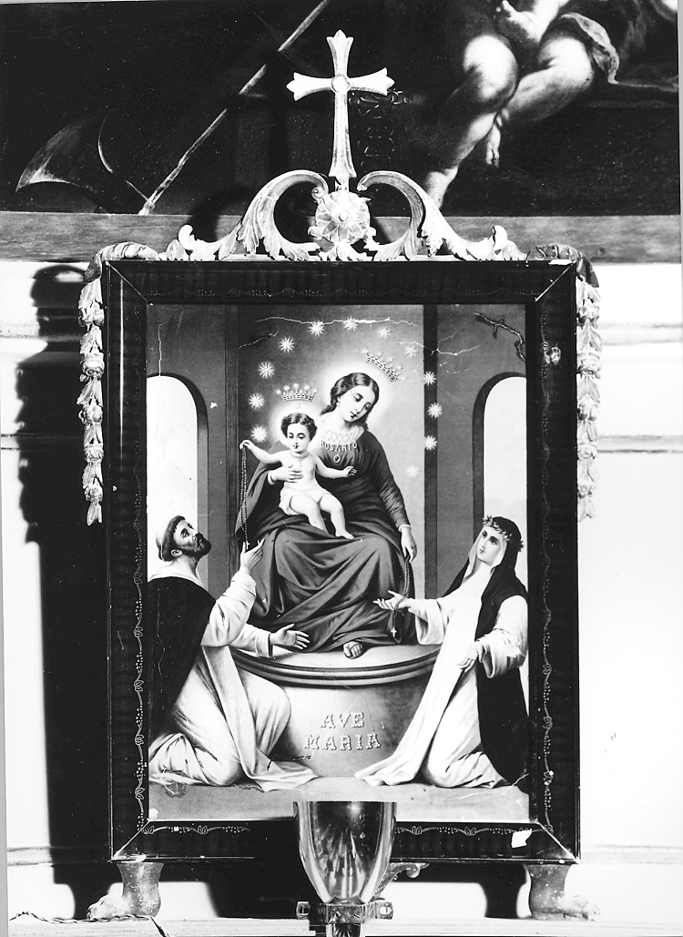 Madonna del Rosario con Santi domenicani e misteri del rosario (stampa smarginata)