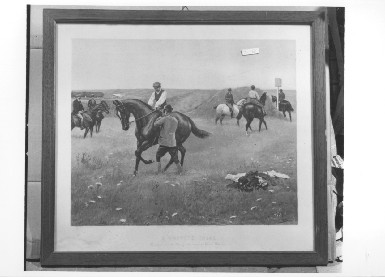 paesaggio con uomini a cavallo (stampa colorata a mano)