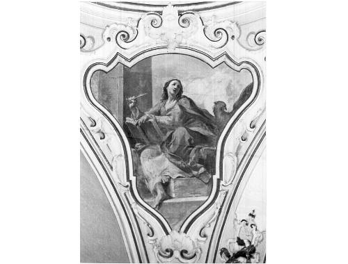 In uno dei pennacchi della volta del presbiterio affresco rappresentante l'evangelista Giovanni, di buona qualità.. Personaggi: l'evangelista Giovanni