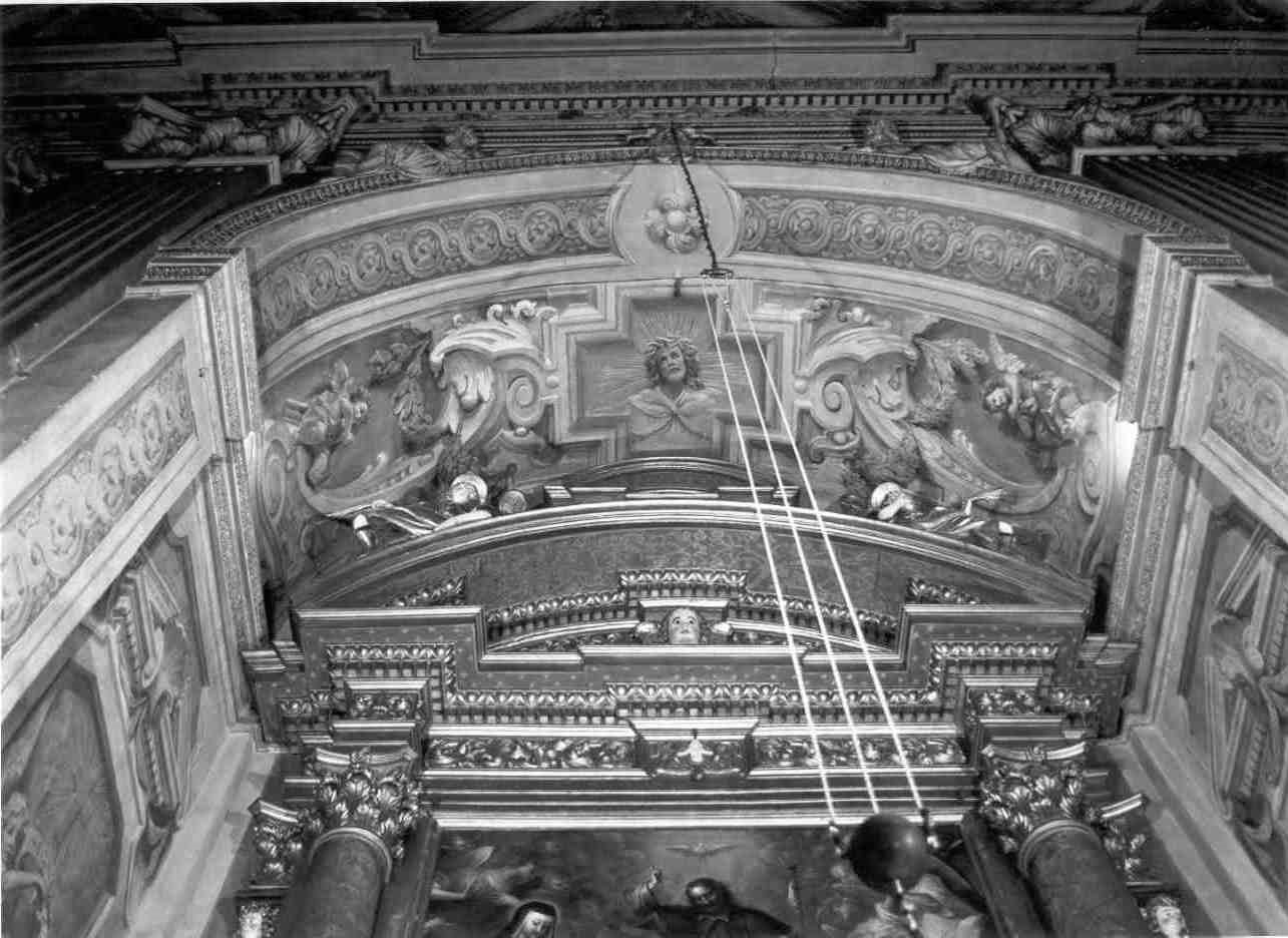 testa di Cristo incoronata di spine/ motivo decorativo a intreccio/ finte architetture con angioletti