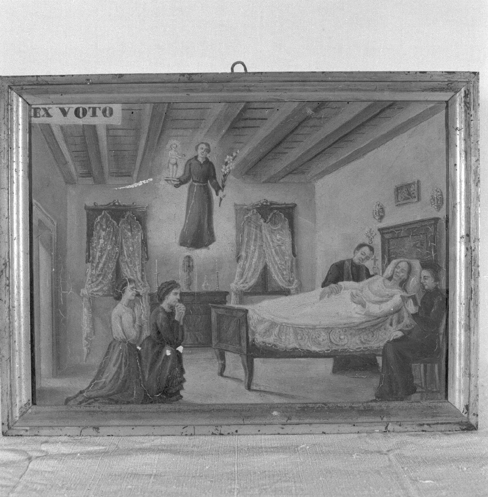 Ex voto.. Personaggi: S. Antonio; Gesù Bambino. Figure: preti; donne; donna morente