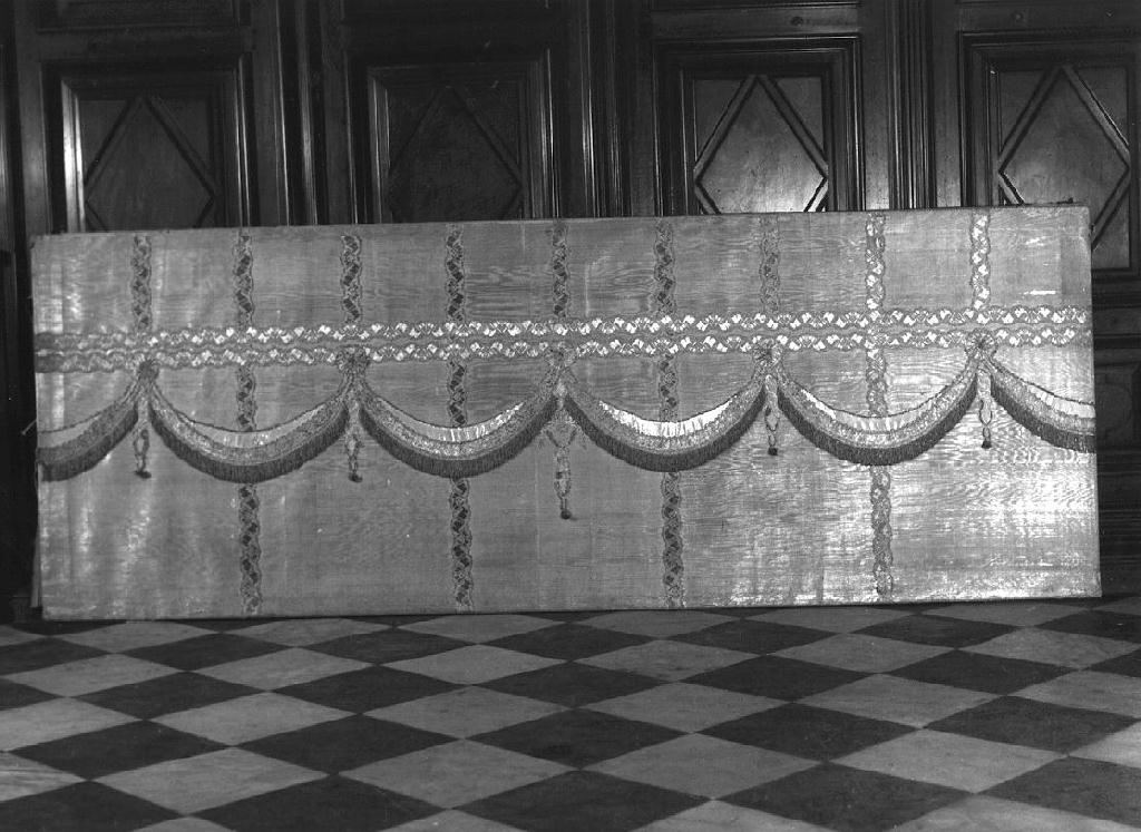 seta/ gros de Tours/ laminatura; filo d'argento/ doratura; filo d'oro/ trama lanciata