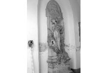 Monumento sepolcrale a stele centinata racchiusa tra lesene scanalate; ent ro la centina ovale con foto della defunta.. Figure: angelo. Fiori