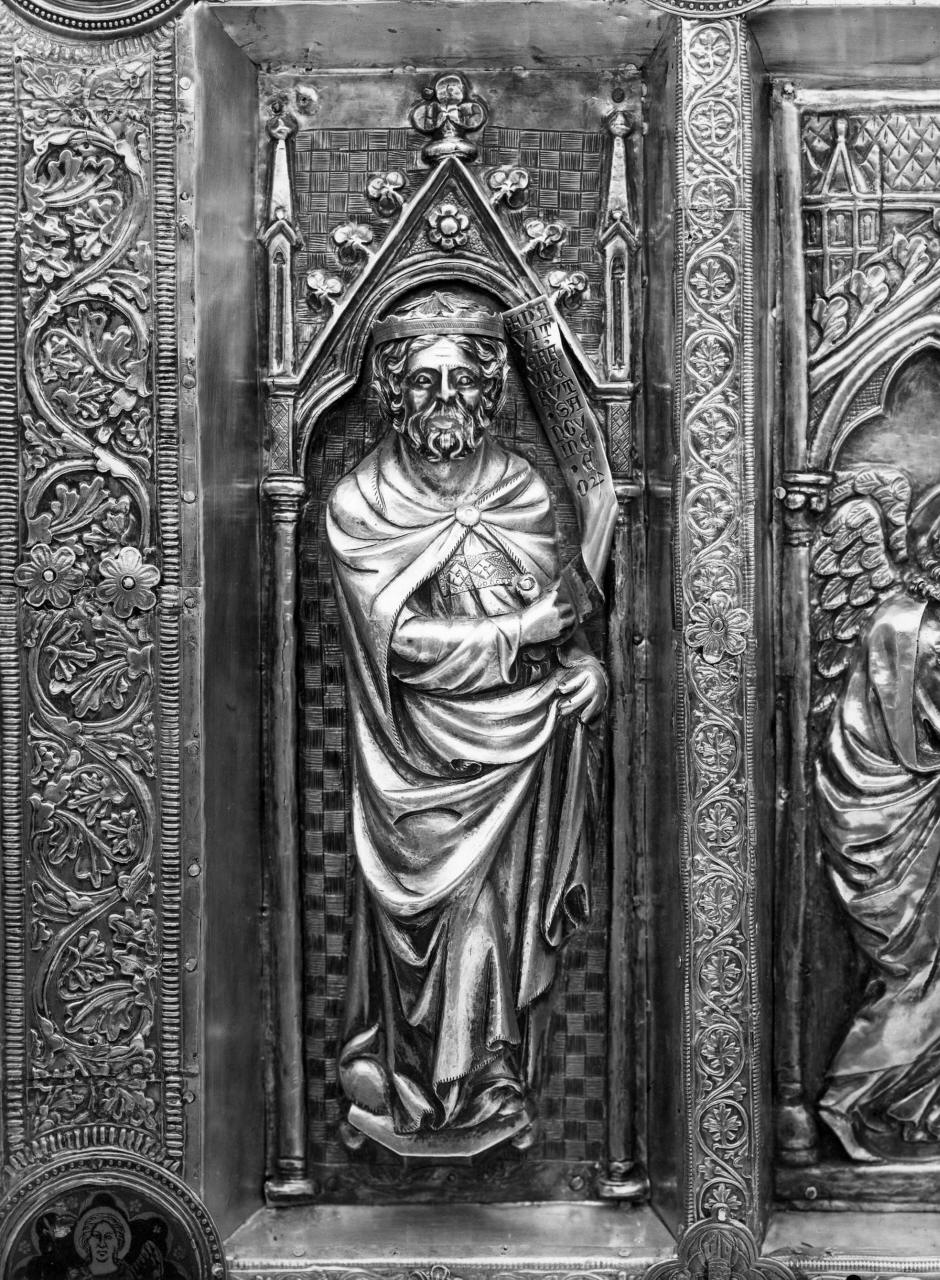 Soggetti sacri. Personaggi: David. Attributi: (David) cartiglio; corona. Architetture: nicchia con guglie
