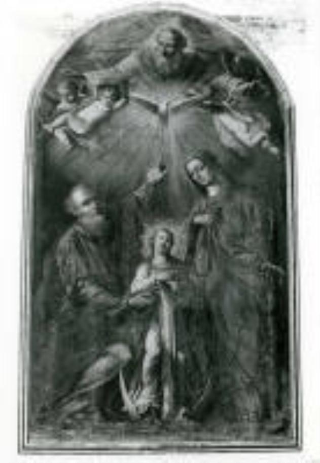 Soggetti sacri. Personaggi: Maria Vergine; Sant'Anna; San Gioacchino; Dio. Allegorie-simboli: colomba dello Spirito Santo. Figure: angeli