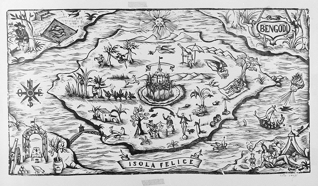 veduta fantastica dell'isola felice di Bengodi (stampa)