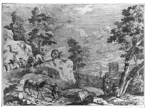 Paesaggio con cavalieri appiedati, paesaggio con alberi e torre (stampa)