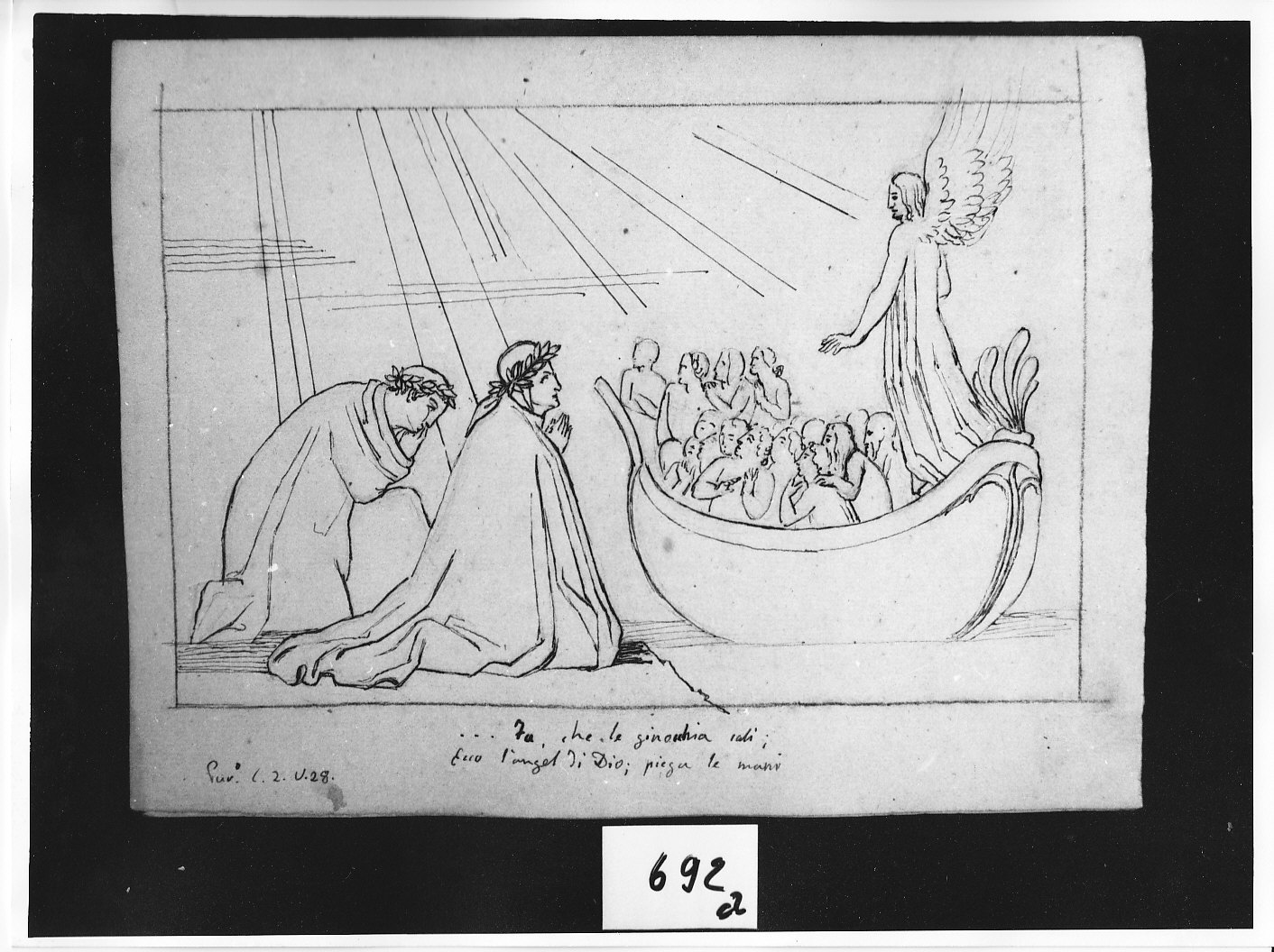 La barca delle anime purganti; Dante e Virgilio davanti all'angelo nocchiero (disegno, opera isolata)