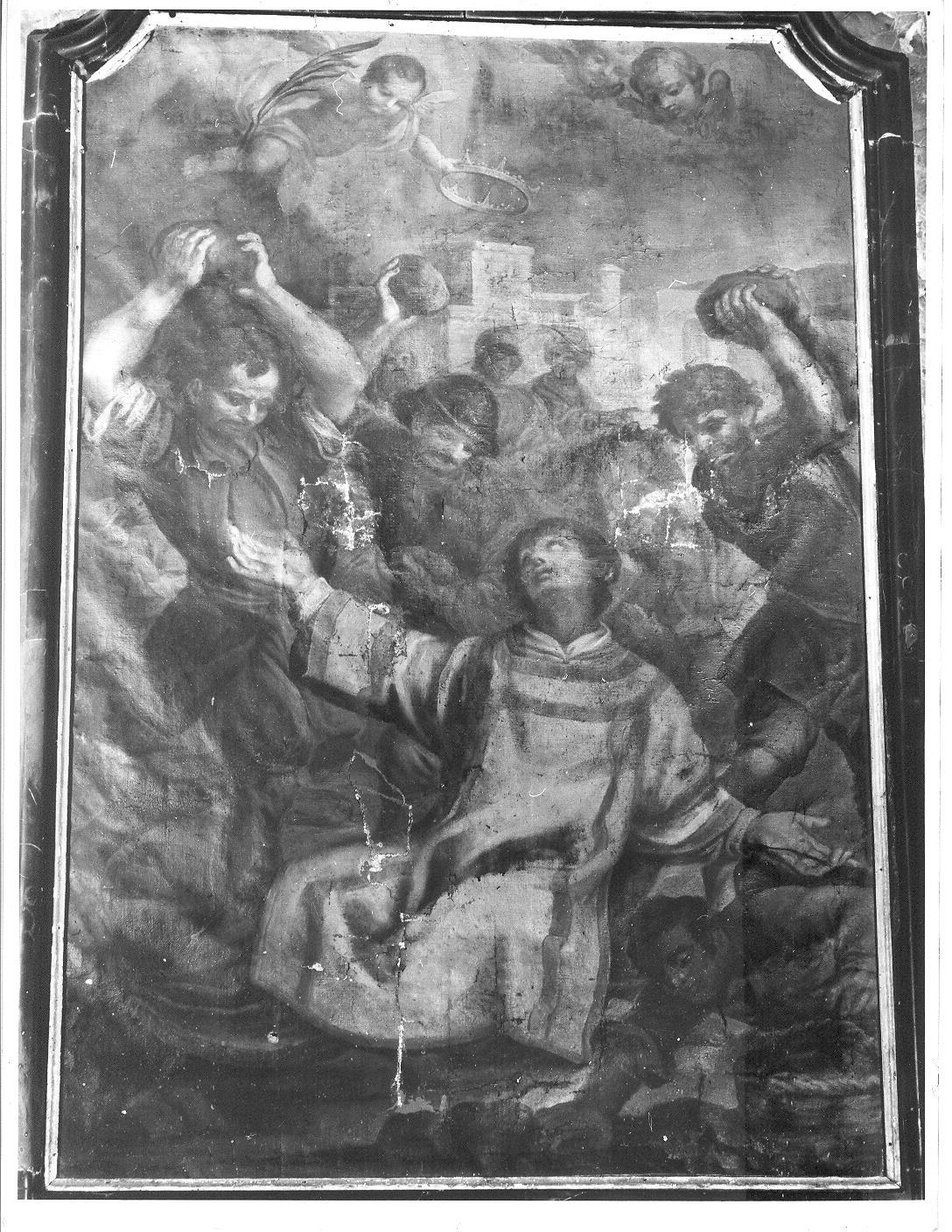 Dipinto. Personaggi: San Lorenzo. Figure maschili. Strumenti del martirio: palma; corona. Figure: angelo