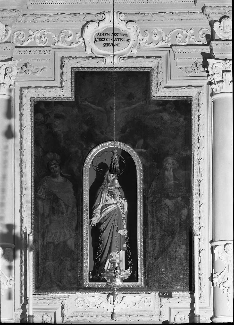 Frontale del Sacro Cuore di Gesù. Dipinto con cornice sagomata al sommo. A sinistra S. Michele, a destra S. Antonio Abate, al sommo la Trinità.