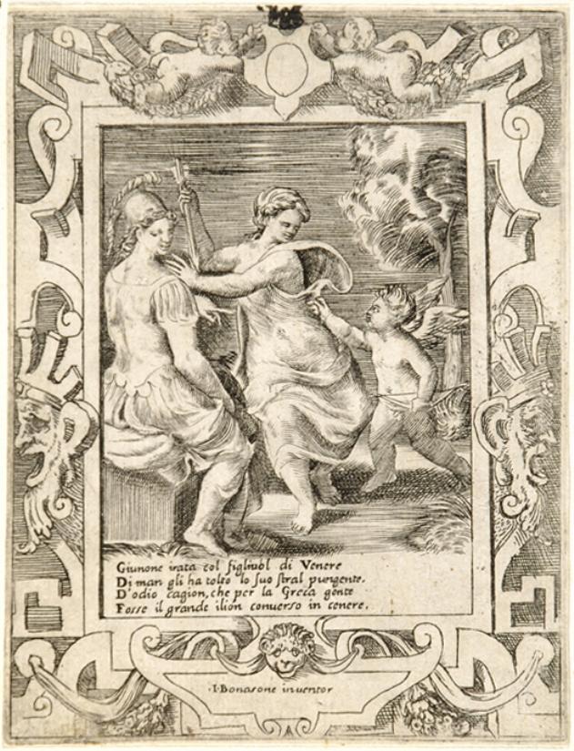 Atena seduta vicino a Giunone che ruba le frecce a Cupido (stampa smarginata)