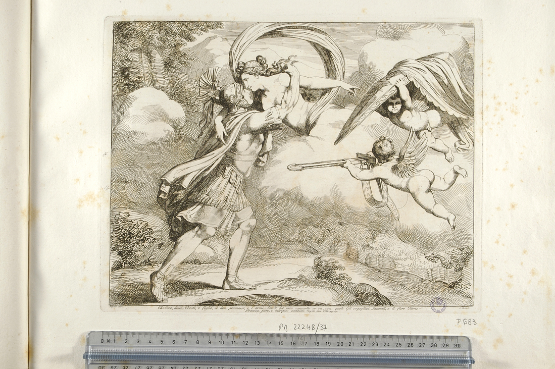 Personaggi: Enea; Venere. Figure: amorini. Armi: spada; scudo. Paesaggi