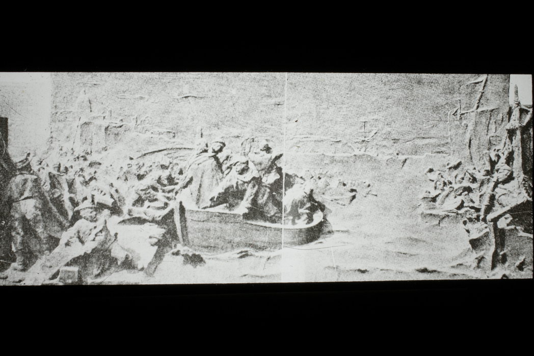 Disegni - Partenza dei Mille; Disegno raffigurante la partenza dei Mille (diapositiva)