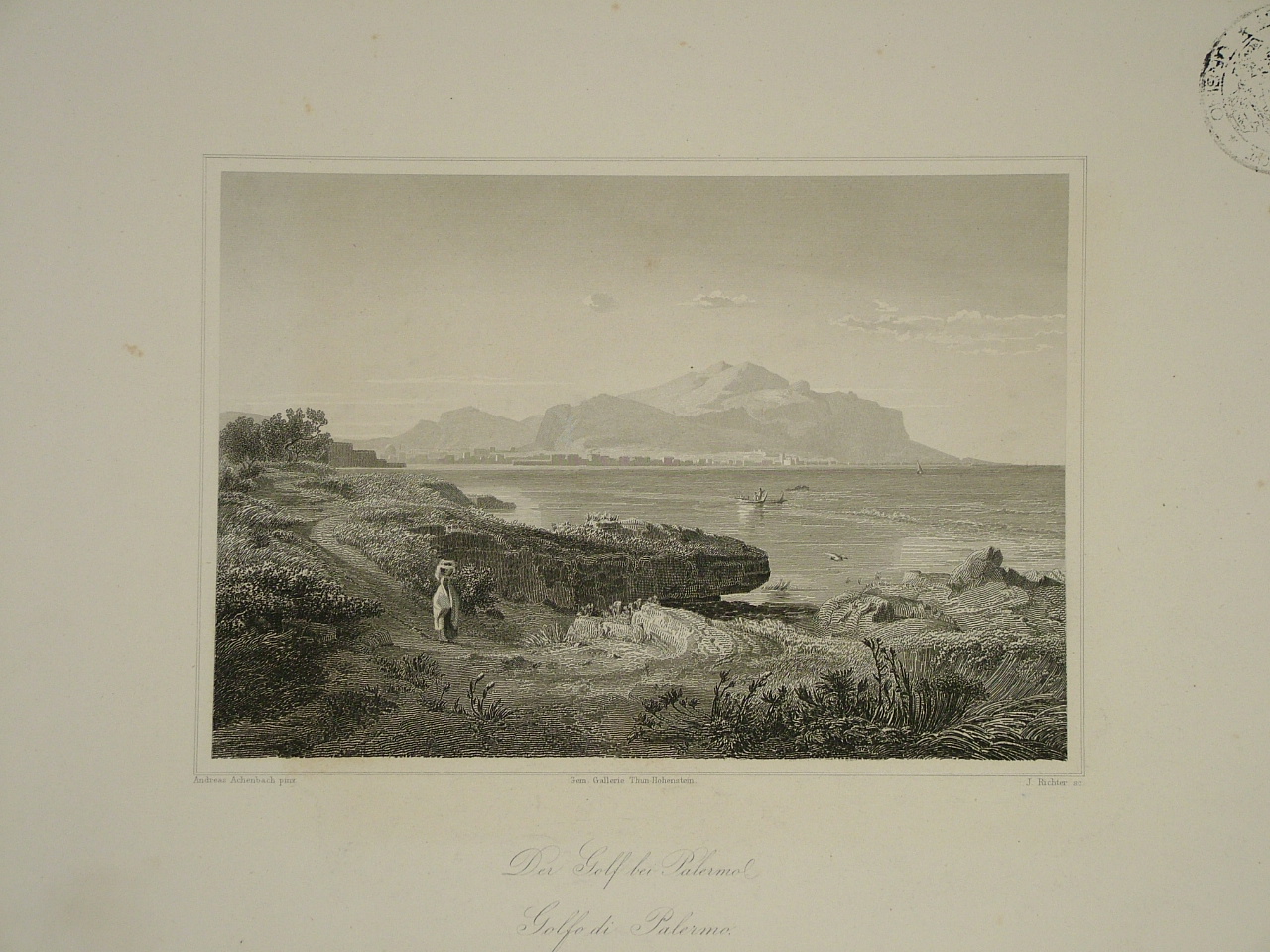 Richter Johann; Achenbach Andreas; Richter Johann; Achenbach Andreas, Veduta del golfo di Palermo (stampa smarginata)