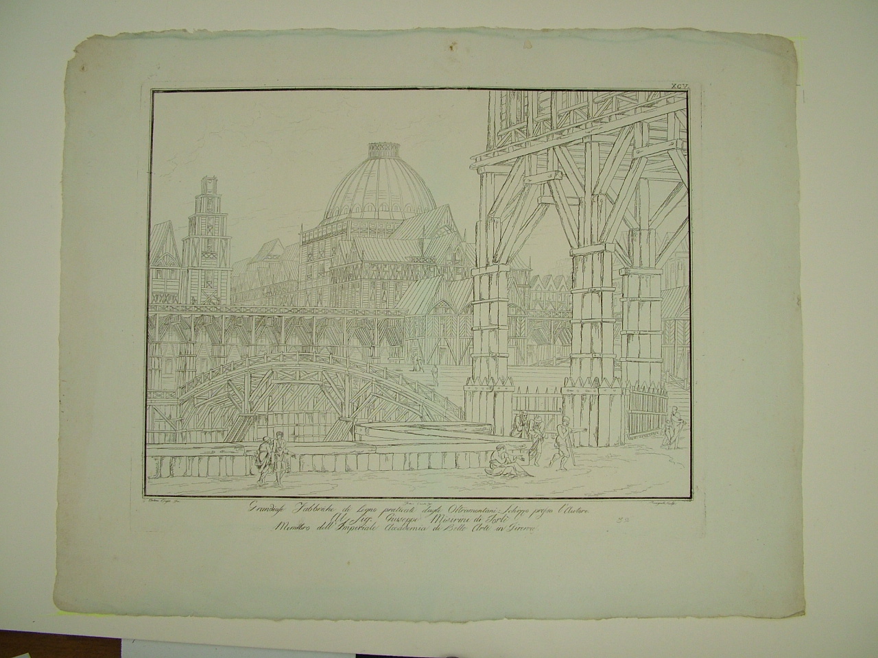 Grandiose fabbriche di legno particate dagli Oltramontani, architettura (stampa)