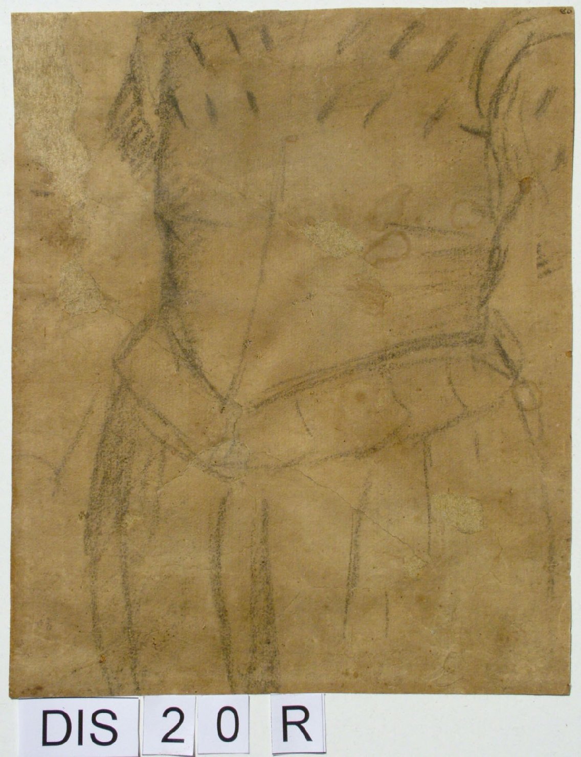 Sul recto è rappresentato uno studio di torso virile acefalo con corazza.. Abbigliamento: corazza. Figure maschili: torso virile
