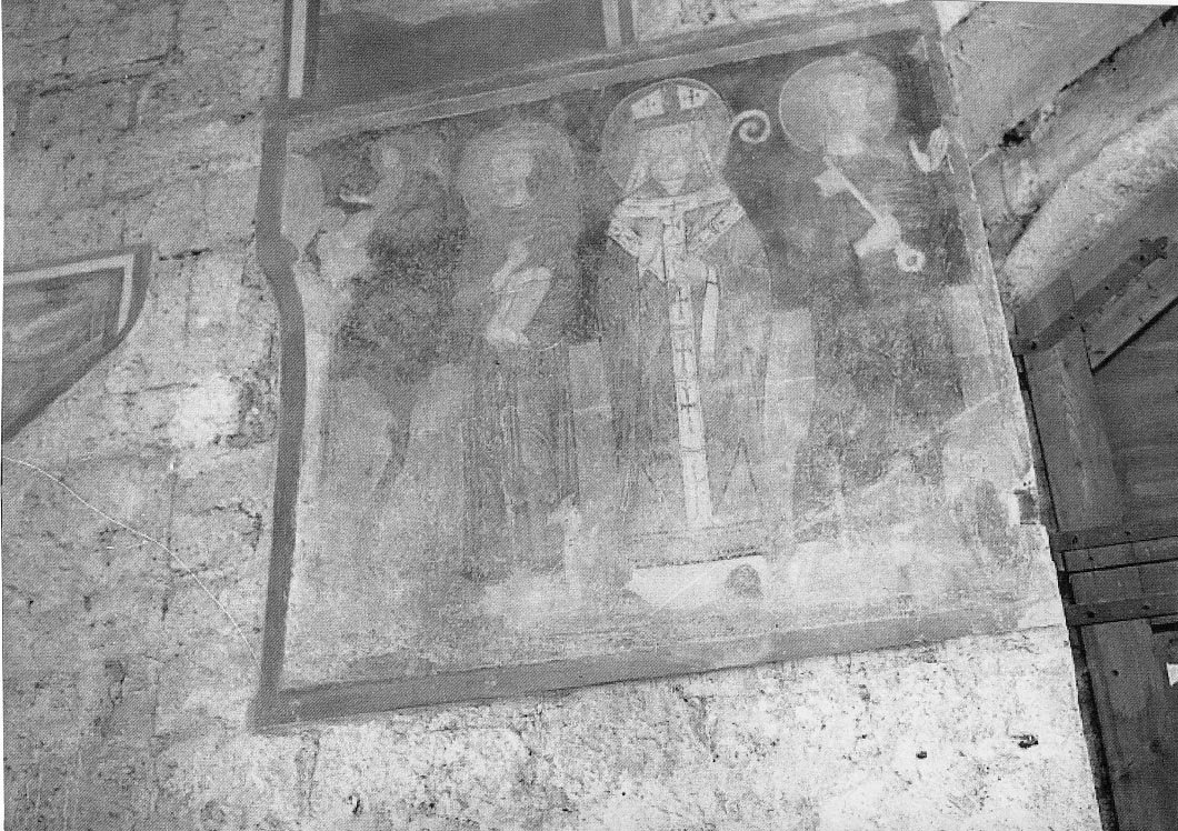 Santo Vescovo tra San Pietro e San Francesco, Santo vescovo (dipinto murale, elemento d'insieme)