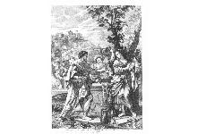 Personaggi: San Girolamo. Figure maschili: mercanti. Animali: cammello. Architetture: edificio. Paesaggi