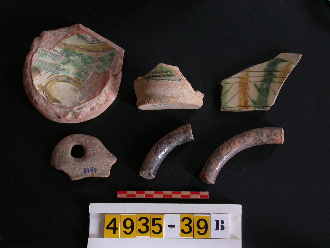 Porzione di ansa a sezione circolare probabilmente pertinente a scaldino. Rivestita con vetrina marrone scuro.