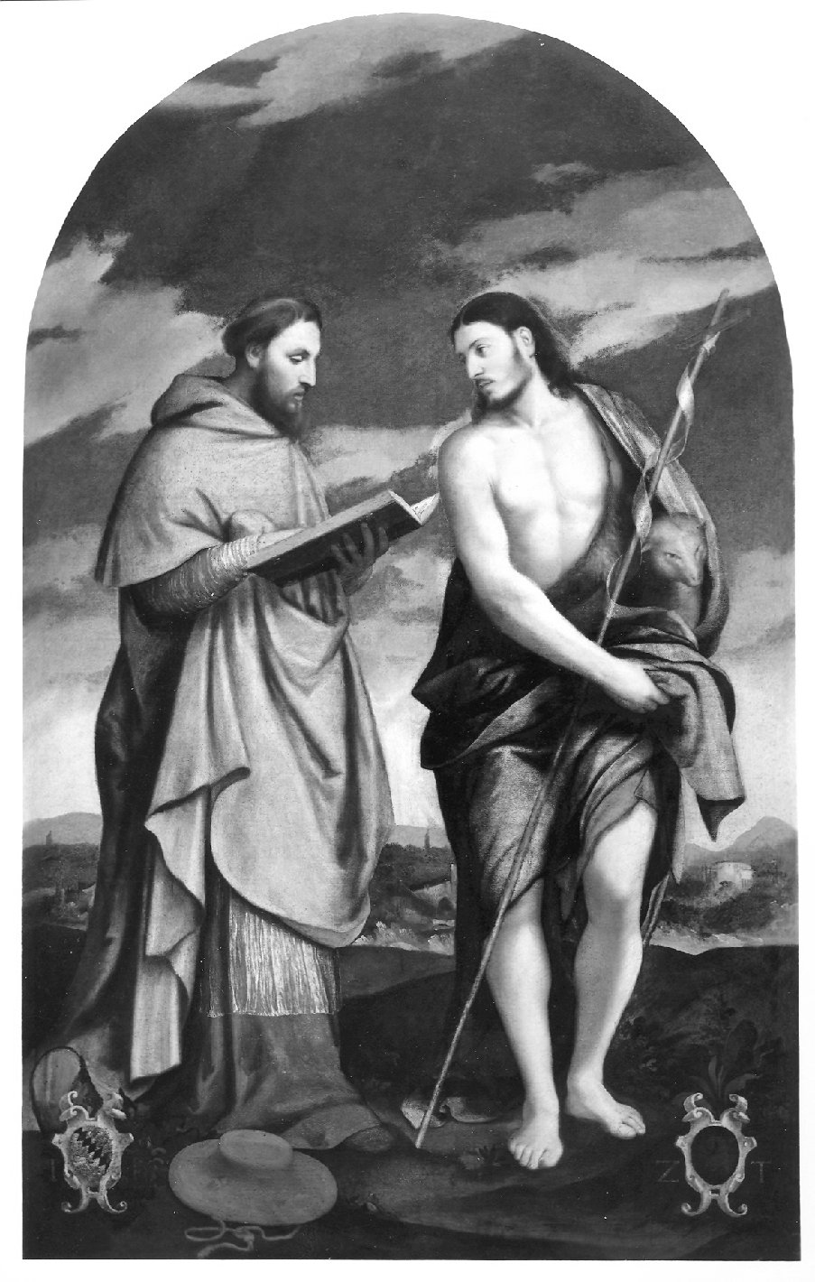 Personaggi: San Giovanni Battista; San Girolamo. Attributi: (San Giovanni Battista) agnello; (San Girolamo) cappello cardinalizio. Paesaggi