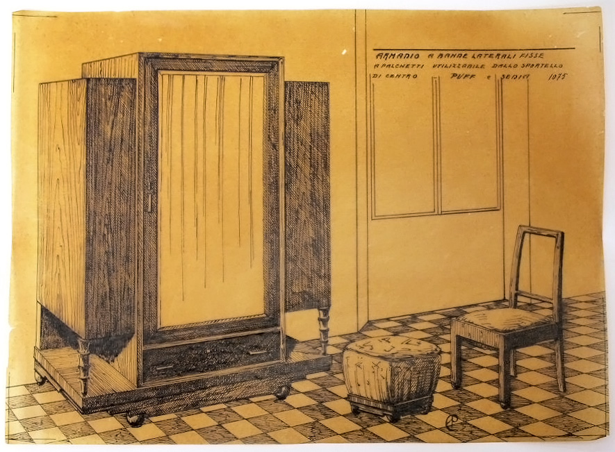 Armadio, pouff e sedia. (disegno, serie)