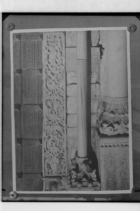 Trani (Ba), cattedrale., Particolare del portale: colonna e capitello