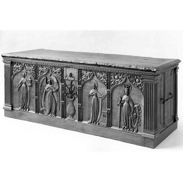 Santa Barbara, Angelo annunziante, Vergine annunziata, Santa Caterina, vaso di gigli