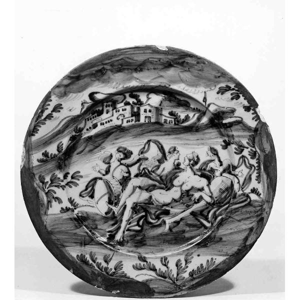 personaggio femminile sdraiato, putti alati, strumenti musicali
