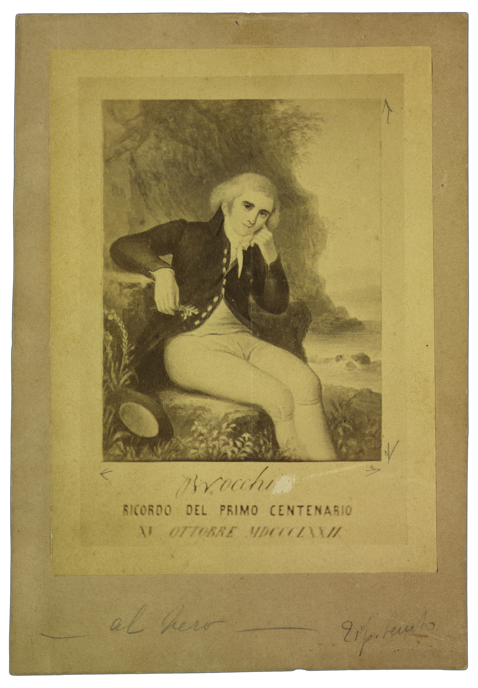 Botanico: Brocchi, Giovanni Battista (1772-1826).Naturalista, specie geologo profondo, professore di botanica a Brescia, sopraintendente delle miniere, esploratore in Africa.Montata su cartoncino 200 x 138 mm. 1 fotografia : albumina ; 160 x 117 mm.