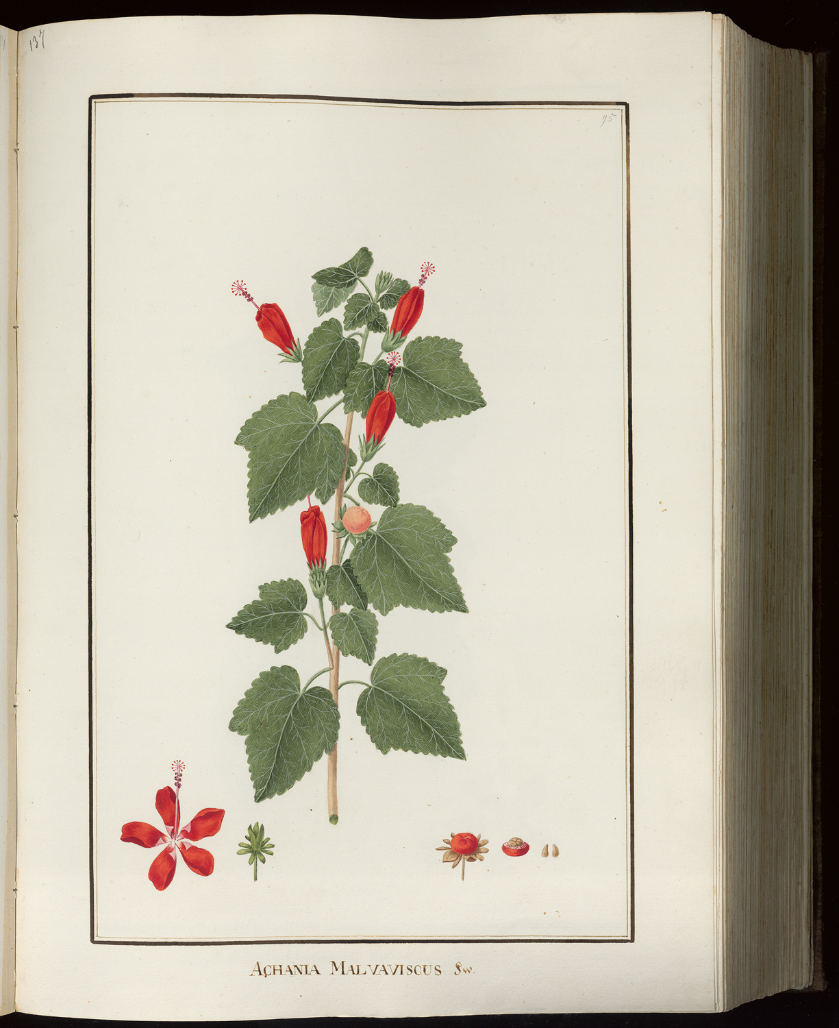 Achania Malvaviscus Sw., Cattrani,botanical illustrations, Bonato, Padua botanical garden, herbarium, flowers, plants