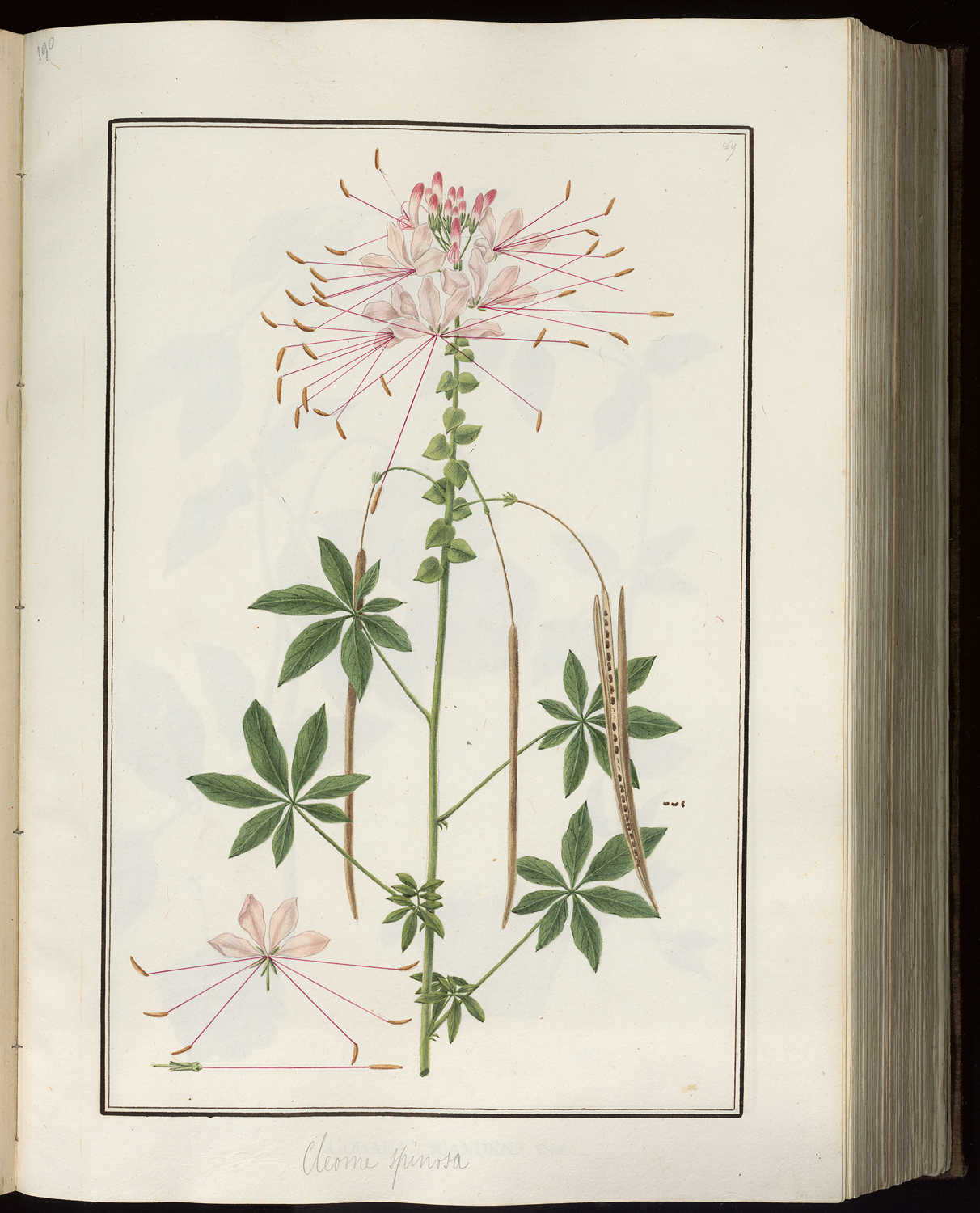 Cleome spinosa, baffi di gatto, Cattrani, pittura botanica, Bonato, Orto Botanico Padova, erbario dipinto, fiori, piante