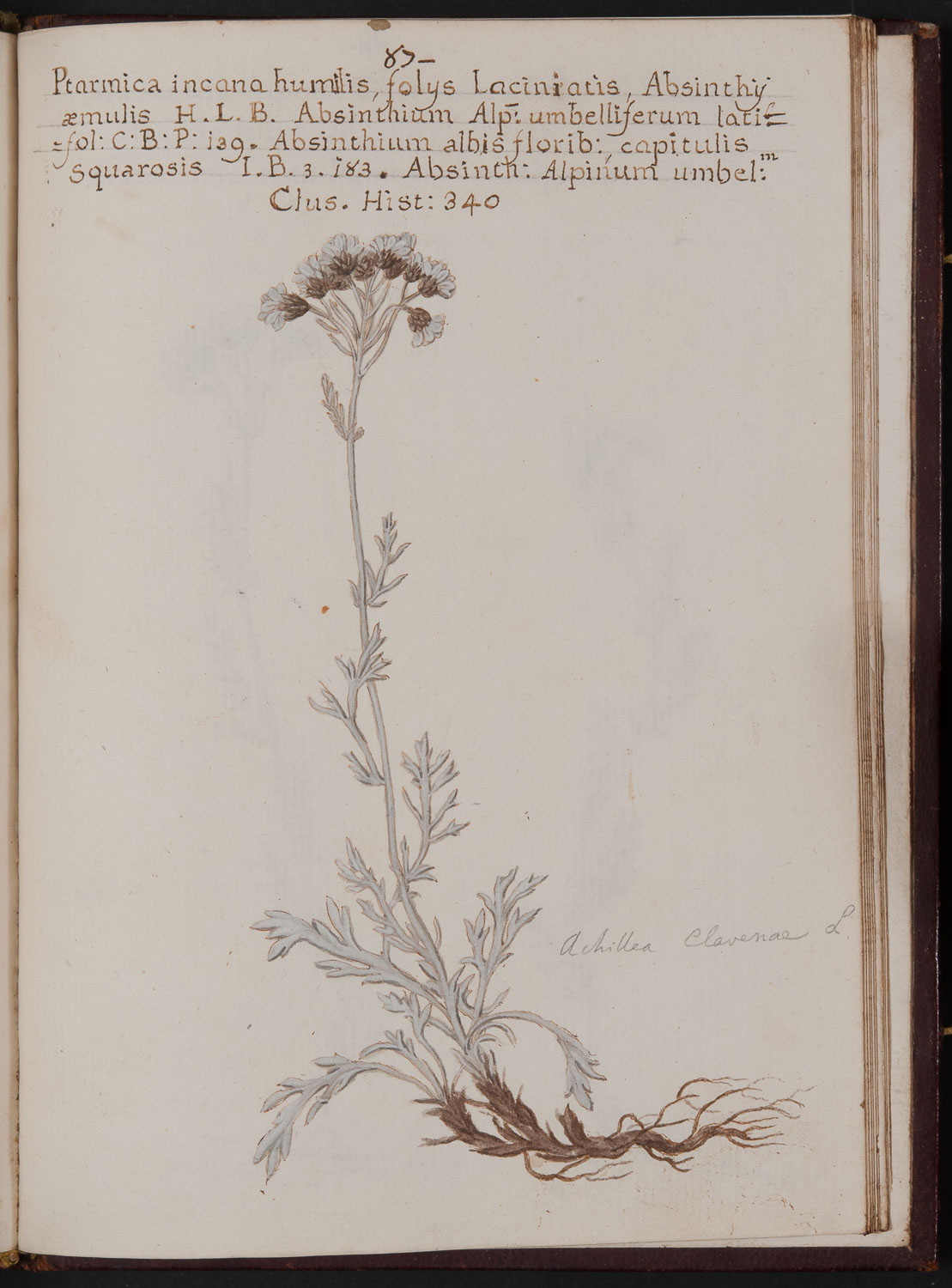 Tavola tratta dal primo volume del manoscritto cartaceo in due volumi Labore et studio Zannichelliano plantarum Montis Caballis ad vivum delineatarum}, comprendente in tutto 170 tavole disegnate e colorate a mano rappresentanti le piante raccolte da Gian Girolamo Zannichelli sul Monte Cavallo (m 2250, Alpi Cadorine Orientali). Questo volume contiene 88 tavole che ritraggono 100 specie, l’introduzione e l’indice. In alto, nome secondo la classificazione bahuiniano-tournefortiana, in basso, a matita, classificazione linneana aggiunta da P.A. Saccardo. Legatura originale in pelle incisa in oro su cartone pressato. Introduzione e indice delle piante rappresentate sono ripresi in Joannis Hieronymi Zanichelli opuscula botanica posthuma...}, pubblicati nel 1730 dal figlio Gian Jacopo Zannichelli, consultabile nel sito della Österreichische Nationalbibliothek https://data.onb.ac.at/ABO/%2BZ184479905.