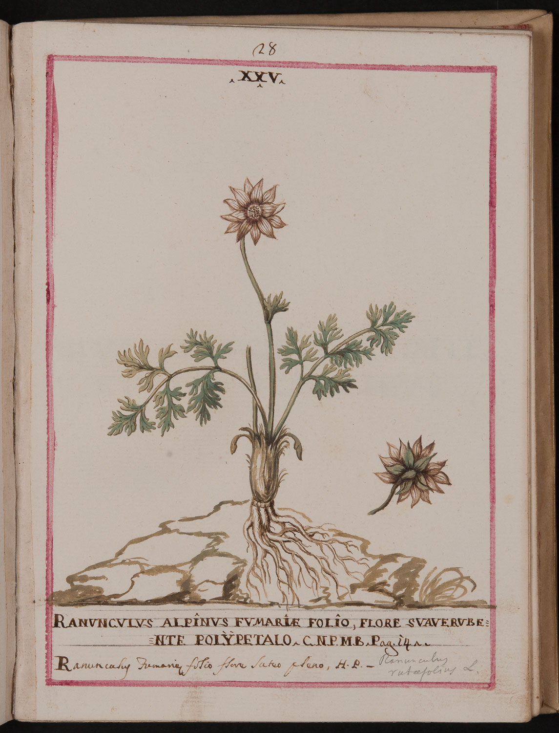 Codice figurato, piante Monte Baldo, disegno e colore a mano, Martini, Giovanni Marsili, Antonio Bonato