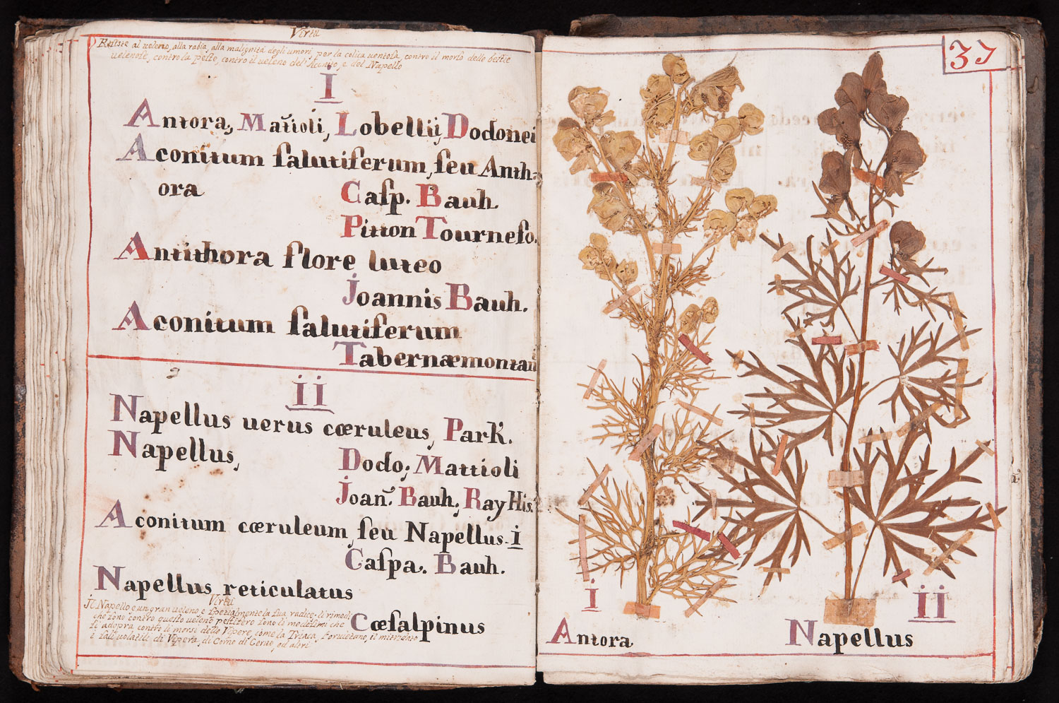1. Nome scientifico: Aconitum anthora L. (Ranunculaceae) Nome attuale: Aconito antora 2. Nome scientifico: Aconitum napellus L. (Ranunculaceae) Nome attuale: Aconito, Napello