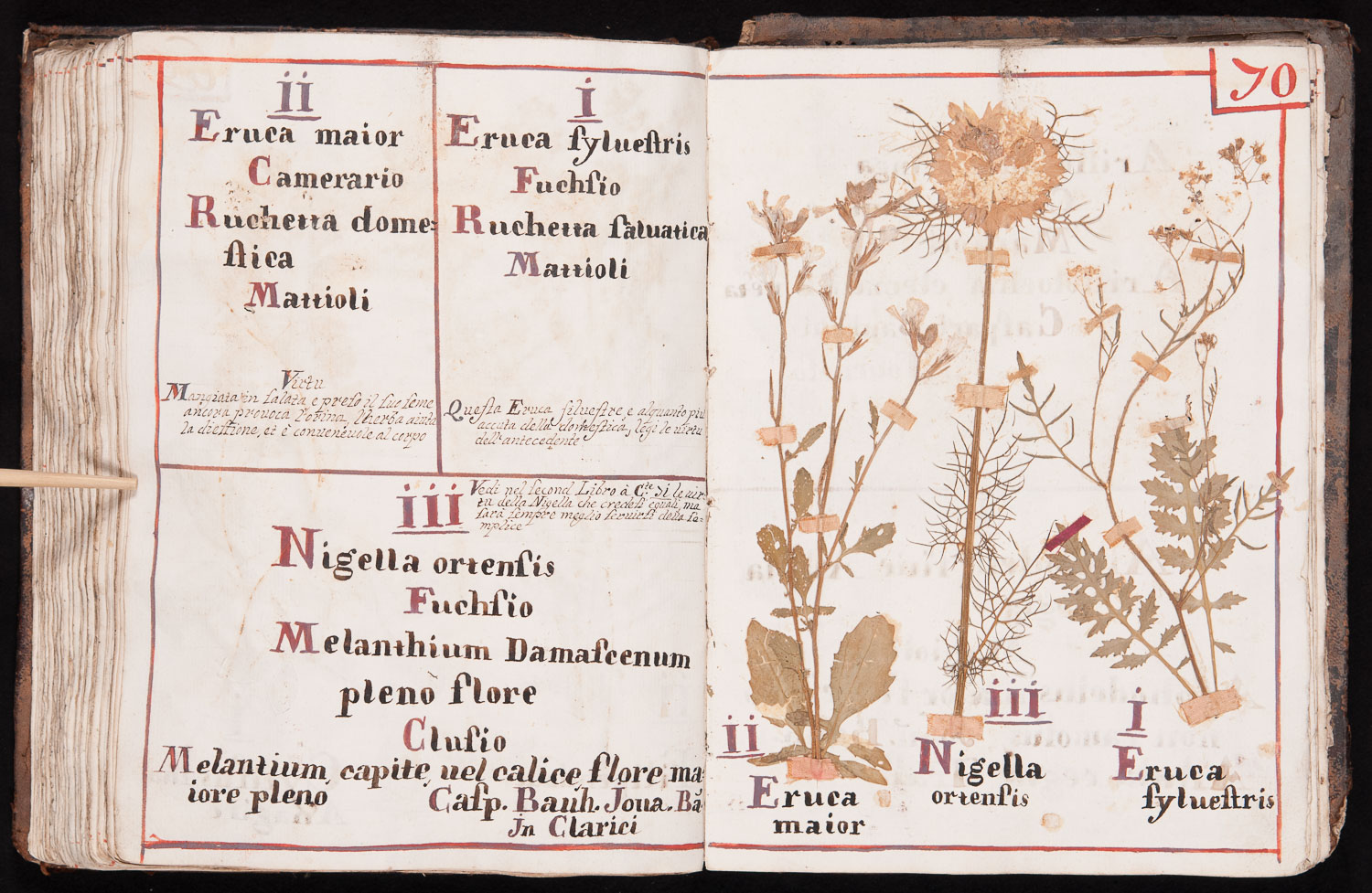 1. Nome scientifico: Rorippa sylvestris (L.) Besser (Brassicaceae, Cruciferae) Nome attuale: Roripa, Crescione radicina 2. Nome scientifico: Eruca sativa Miller (Brassicaceae, Cruciferae) Nomea attuale: Rucola 3. Nome scientifico: Nigella damascena L. cv. (Ranunculaceae) Nomea attuale: Damigella