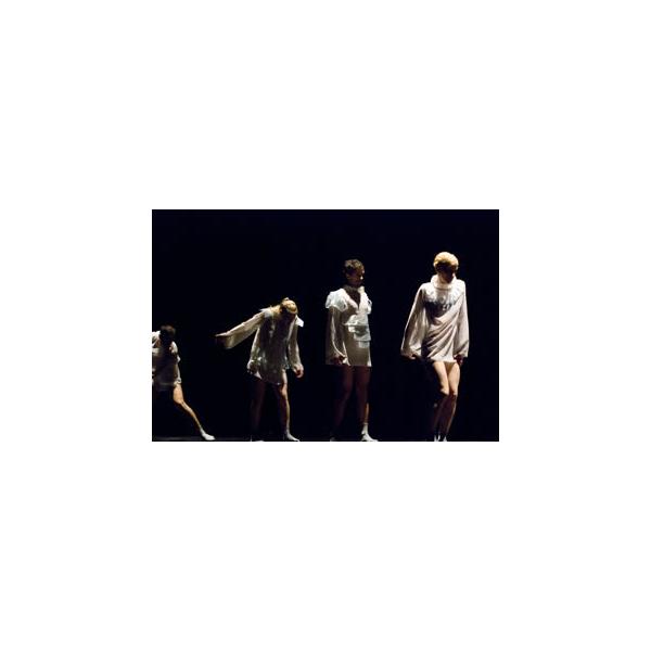 L'immagine digitale in oggetto è parte della collezione digitale “Prime nazionali in Puglia” che nasce dall'omonimo progetto promosso dalla Regione Puglia, Assessorato al Mediterraneo, Cultura e Turismo, finanziato dal FESR ASSE IV e attuato dal Teatro Pubblico Pugliese per dar vita ad un fitto calendario di prime nazionali programmate tra il 2011 e il 2012 all'interno di alcuni teatri pugliesi. La fotografia documenta un momento della performance “Strange news” eseguita dal Balletto dell'Esperia, all'interno del Cine Teatro DB d'Essai di Lecce il 10 febbraio 2011. La performance è parte di uno spettacolo più complesso e articolato che comprende un secondo balletto “Atto di Forza”. Le due coreografie descrivono, attraverso i movimenti del corpo, le diverse re-azioni umane in ogni loro sfumatura. "Atto di Forza" è ispirata all'idea generale di conflitto, quello che nasce da un rapporto di coppia o dal confronto con un gruppo di persone, fino ad arrivare al conflitto bellico che affligge il mondo. “Strange news” nasce invece dalla volontà di raccontare sempre attraverso la danza e la musica gli strani codici che l'uomo inventa per poter relazionarsi con la società in cui vive.
