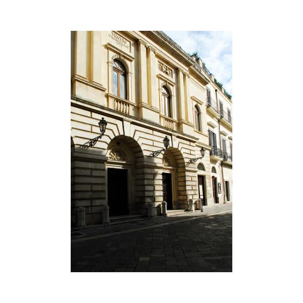 L'immagine è parte della campagna fotografica realizzata dalla fotografa Margherita Mirabella per Teatro Pubblico Pugliese, che con i suoi scatti ha ripreso le eleganti architetture e i rifiniti dettagli di alcuni dei più bei teatri pugliesi e di alcuni spettacoli teatrali portati in scena in questi ultimi anni. La fotografia, scattata all'esterno del Teatro Paisiello di Lecce, ci mostra come appare esternamente la struttura teatrale progettata dall'architetto Oronzo Bernardini e sorta su una preesistente costruzione in legno risalente al XVIII secolo. Lineare e sobria, la facciata in pietra locale custodisce i simboli del teatro classico greco. Nel 1870 il teatro, dedicato al musicista tarantino Giovanni Paisiello, viene inaugurato con la rappresentazione dell'opera “Il ballo in maschera” di Giuseppe Verdi. Insieme all'affresco della volta e agli elementi decorativi in stucco dorato, il piccolo teatro di Lecce conserva, nel foyer, due busti in marmo realizzati dallo scultore Achille Bortone e l'originale pianoforte del grande artista leccese Tito Schipa. Dunque un piccolo ma prezioso gioiello che oggi si pone come simbolo dell'architettura di teatro all'italiana.